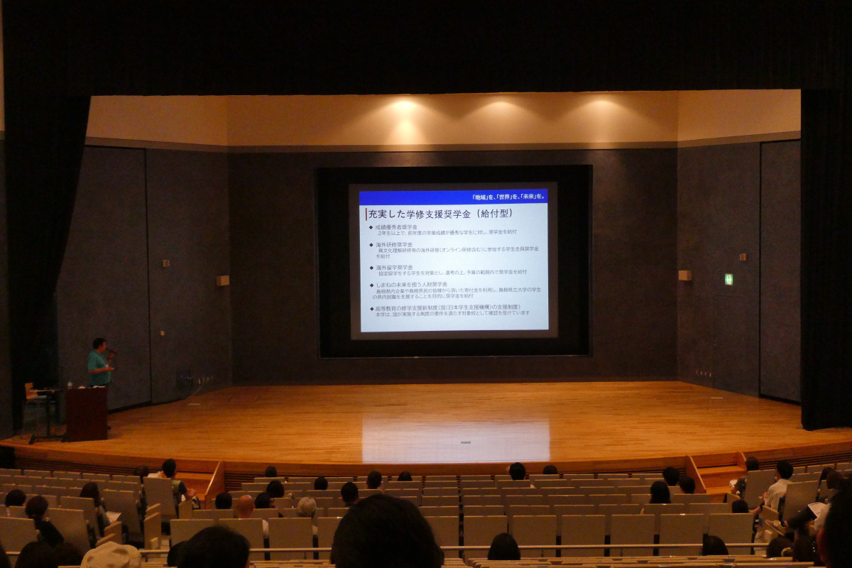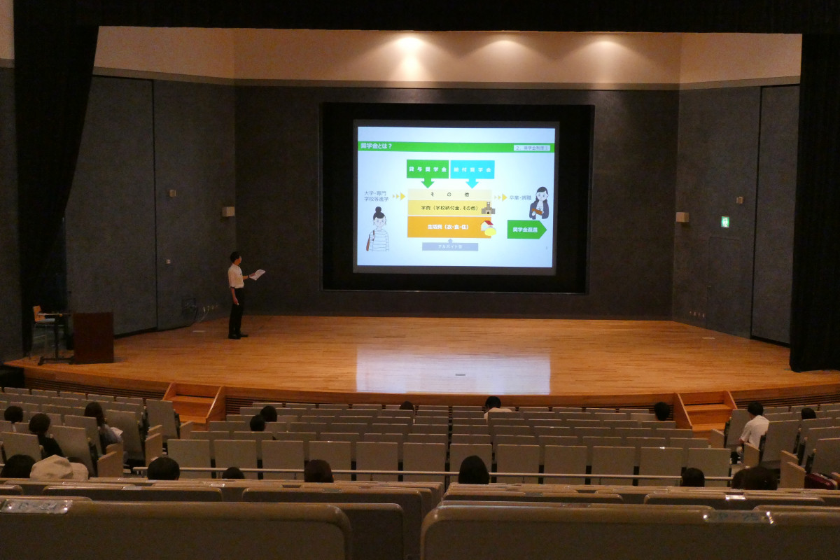 保護者の方向けに、本学についての説明、入学時必要経費、各種支援制度についてご説明しました。また、日本学生支援機構の派遣アドバイザーによる奨学金等進学・修学資金説明会を行いました。