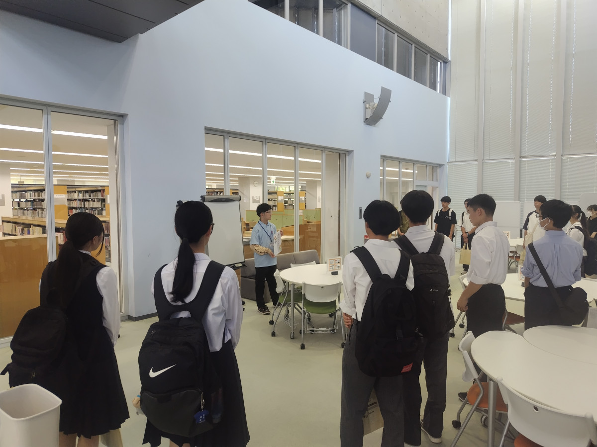 学生ガイド案内が案内役を務める「キャンパスツアー」を実施し、図書館や学生寮を見学しました。「大学内がどのような感じかわからなかったが、きれいで印象がよくなった」といったうれしい感想もいただきました。