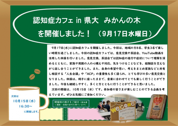 認知症カフェ(みかんの木)を開催しました!(9月17日)