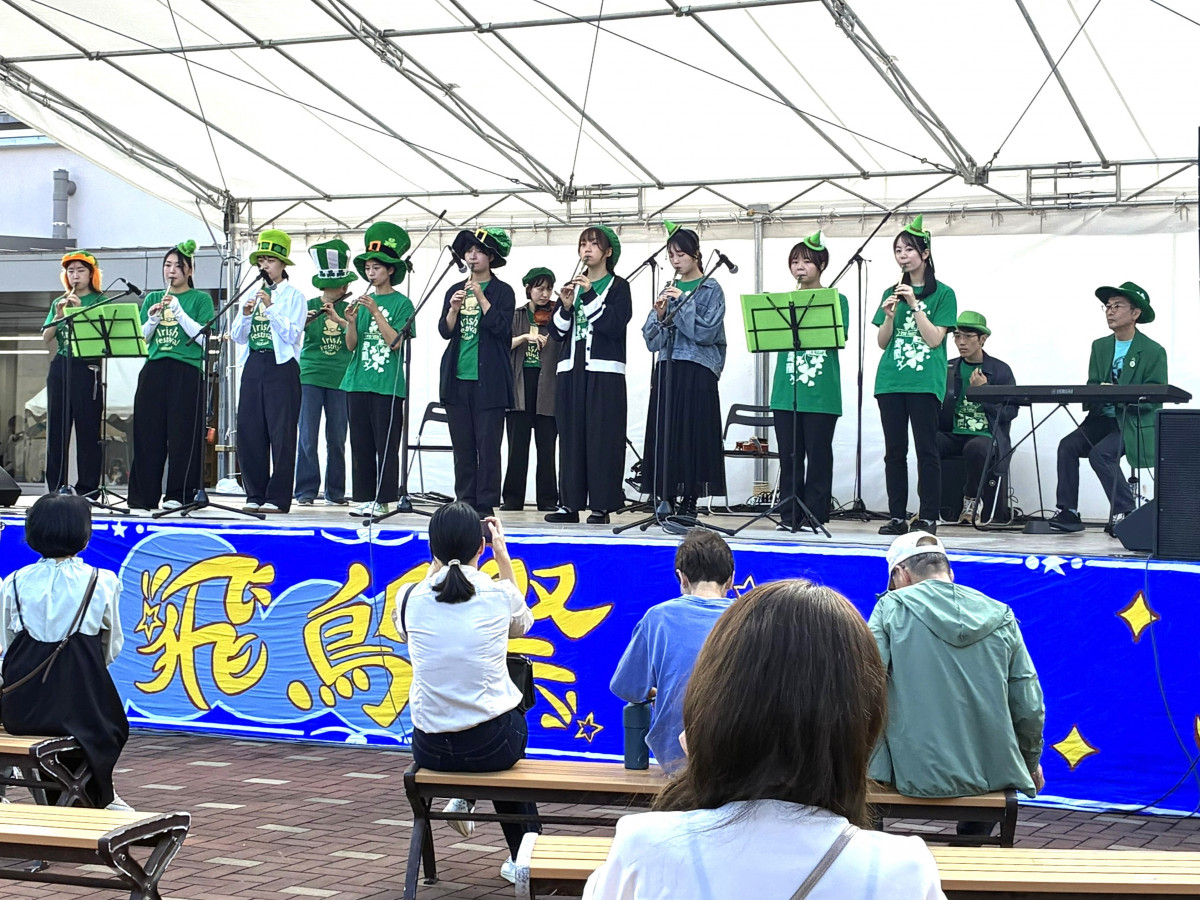 外部から生田流筝曲の先生をお招きし、指導していただいています。「さくらさくら」「六段の調」などの古典から、馴染みのあるポップスなど部員が選んだ曲を練習しています。創部したばかりですが、飛鳥祭では尺八部との合奏にも挑戦しました。音楽を通して、日本文化に触れてみませんか?