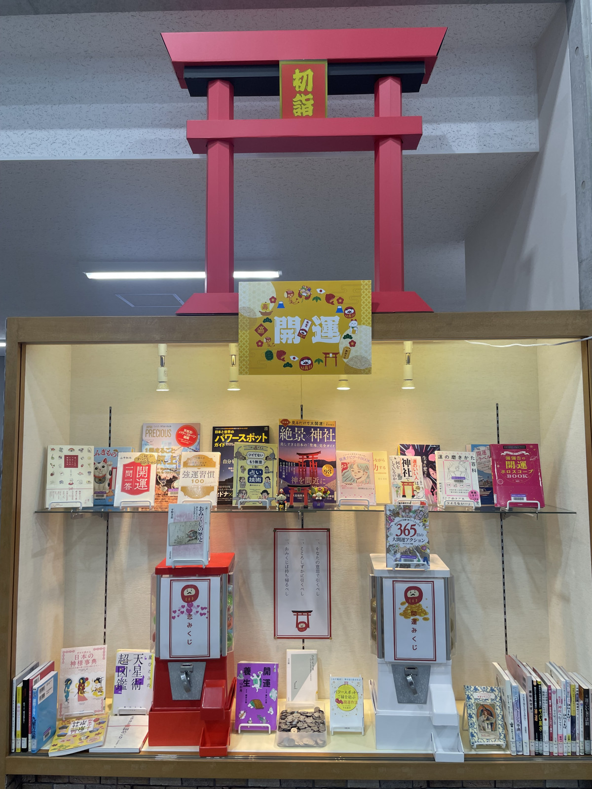 さて、みなさんは今年1年をどのような年にしたいと考えていますでしょうか。なんにせよ、いい事がいっぱい起こる年になったらいいなと思いませんか?そんな願いを込めて、開運に関する本や、縁起のよさそうな本を集めました。もしかしたら、近寄るだけでもご利益があるかも!?また、おみくじも置いています。今年最初の運試しにぜひ引いてみてください。