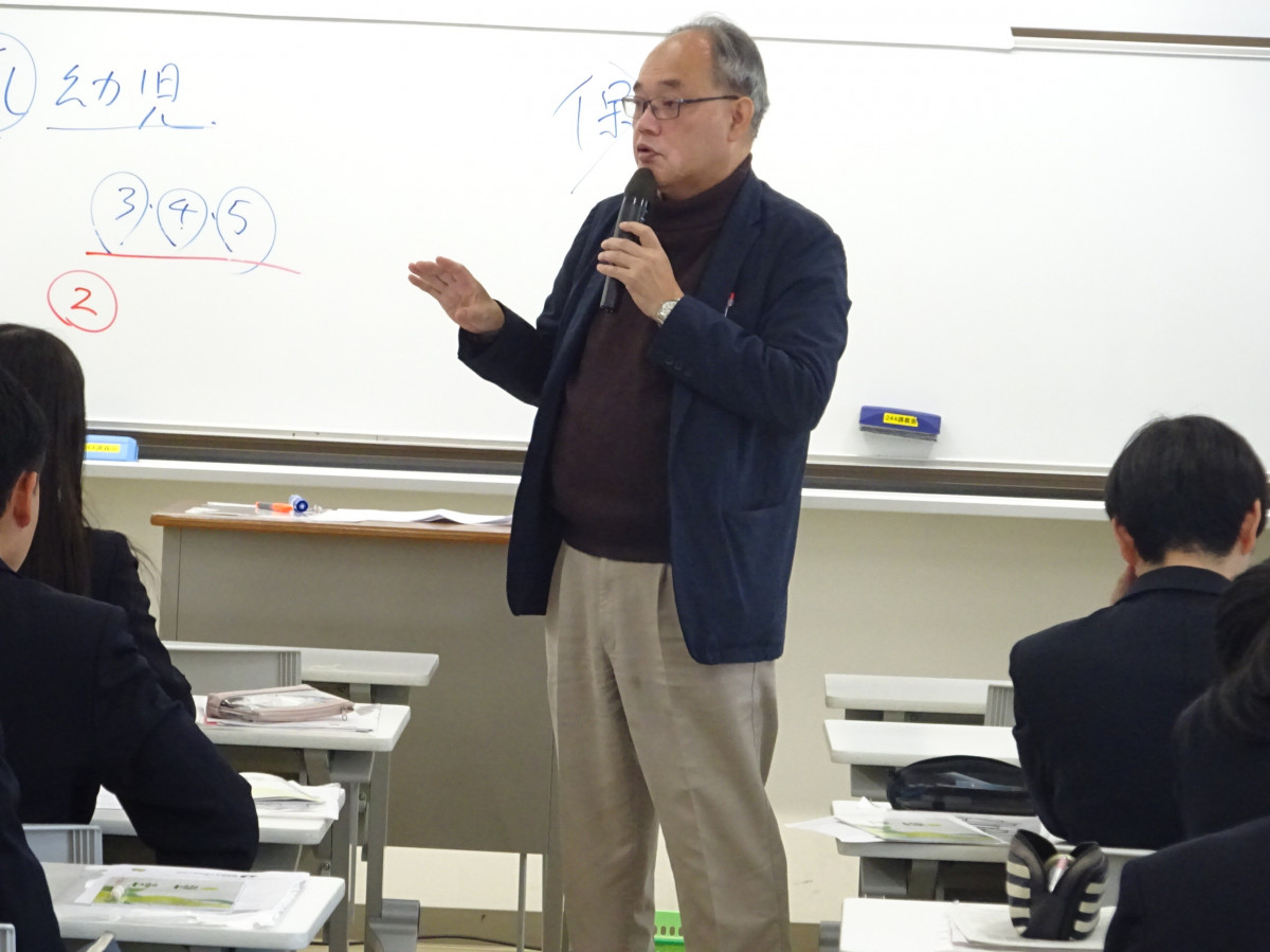 保育学科の渡辺 一弘先生は『幼児教育・保育の免許、資格についてー幼稚園免許、保育士資格を中心に、小学校免許も含めてー』という演題で、