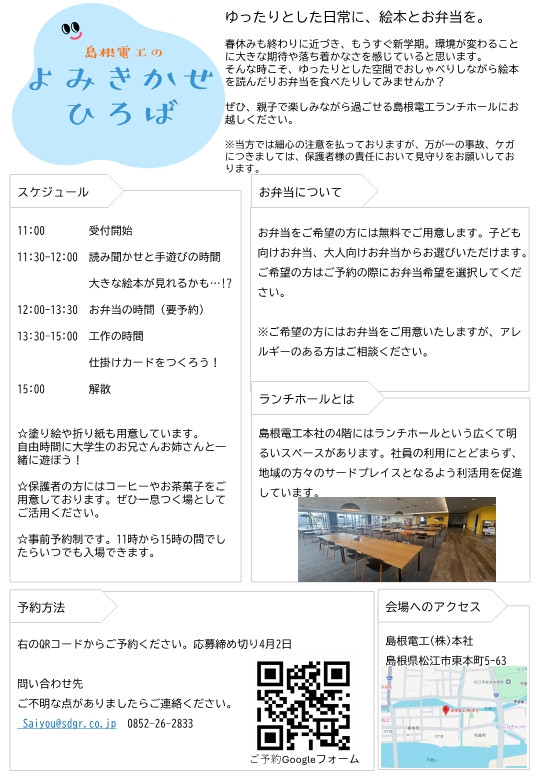 島根県立大学の学生が、島根電工株式会社様とタッグを組み、春休みの特別イベントを開催します!