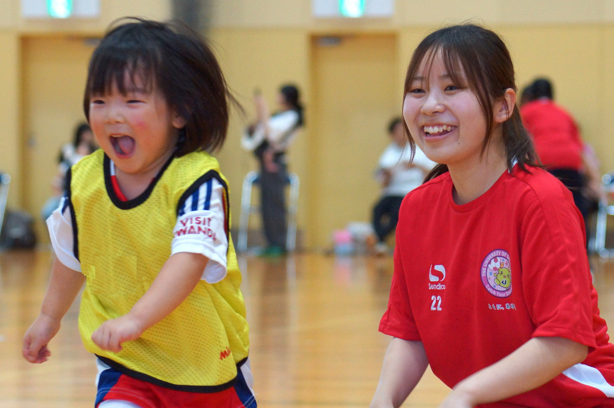 対象は年少~年長・小1~小3の女の子で、サッカーに限らず、様々な運動遊びを取り入れたプログラムを(公財)日本サッカー協会公認A級コーチジェネラルを取得している本学教員と(公財)日本サッカー協会公認キッズリーダーU6資格を取得した"KENDAI NADESHIKO F.C.C"*の学生が指導にあたります。