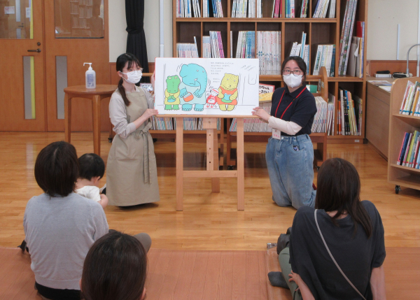 続きを読む5月15日(木)、古志原公民館乳幼児学級のみなさんが約30名来館されました。おはなしレストランボランティアの学生1名と司書が大型絵本の読み聞かせや手遊びをしました。みなさん、大型絵...