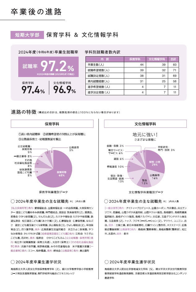 【松江キャンパス】人間文化学部・短期大学部の進路・就職について