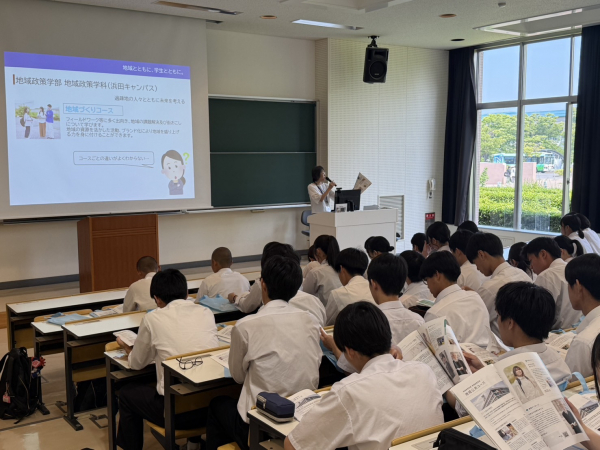 令和7年7月10日(木)に、大田高校1年生が本学を訪問し、キャンパス見学を行いました。学部学科説明まずは、アドミッション室福間室長から浜田キャンパスの2学部5コースについて説明があ...