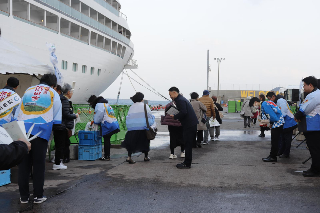 クルーズ客船「三井オーシャンフジ」寄港 乗船客へのおもてなしボランティア