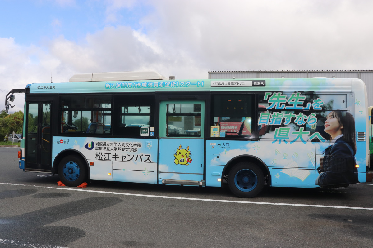 松江キャンパスの人間文化学部「地域教員希望枠」入試の開設に伴い、松江市営バスのラッピングをしました。
