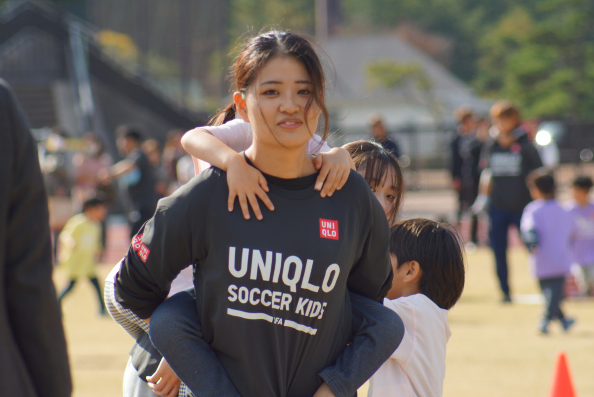 本学のKENDAI NADESHIKO F.C.C(県大なでしこ地域貢献サークル)のメンバー33名が、子どもの引率スタッフとして参加。ゲスト参加された"元なでしこジャパンの宮間あやさん"と6歳以下の幼児約550名と共に”笑顔とハイタッチ”で子どもたちとサッカーを楽しみました。