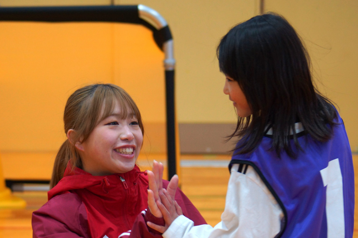 "笑顔とハイタッチ"をキャッチフレーズとして開催している”なでしこひろば”の活動を通して、運動好きな子どもと、運動指導の得意な学生を沢山増やし、地域に貢献したいと考えています。また、今年度の重点テーマとして”コミュニケーション:対話”をキーワードとして、ただ運動の指導をするだけでなく、”子どもの主体性を育む運動指導”をテーマに、子どもとの対話を大切にしながら実施しています。