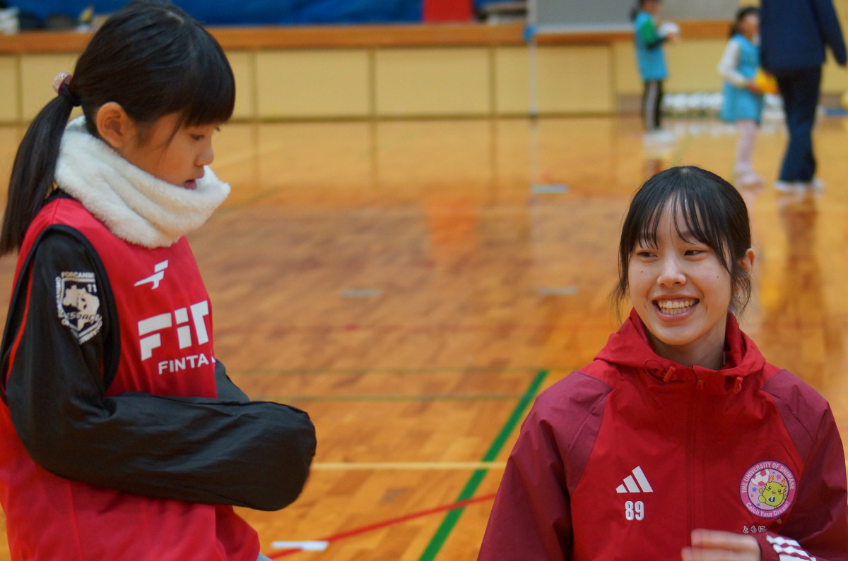 私は1年生の頃から"なでしこひろば"の活動に参加し、「笑顔とハイタッチ」を大切にしながら、多くの子どもたちとサッカーや運動遊びを通して関わってきました。2年生では部長を務め、仲間と支え合いながら活動を進める中で、周りを見て動くことや協力することの大切さを学びました。"なでしこひろば"で出会えた子どもたちや仲間、先生方とのご縁に感謝し、ここでの学びをこれからも大切にしていきたいです。ありがとうごさいました!
