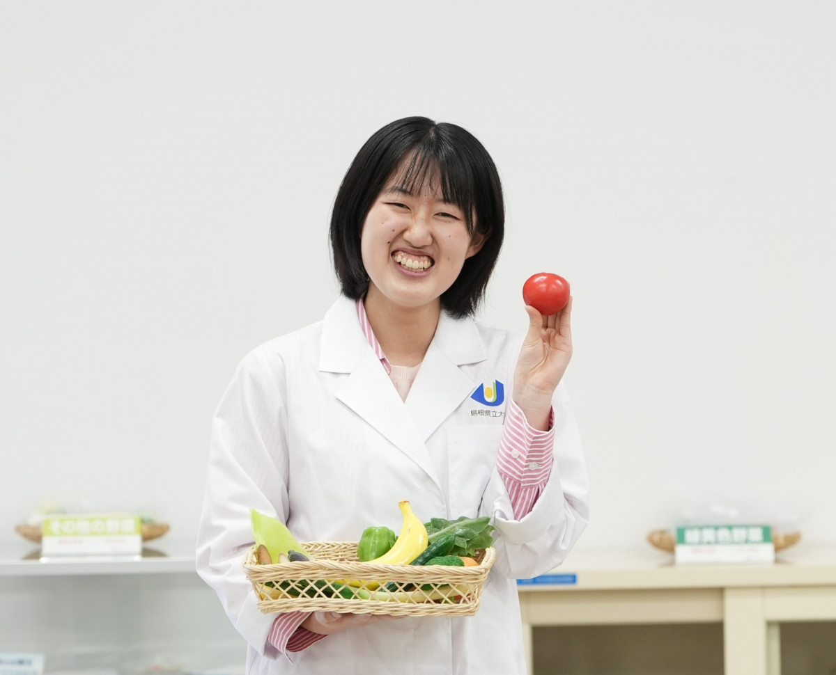 また、給食実習で栄養バランス、効率、値段などを考慮して献立を考えたり、島根県健康寿命延伸プロジェクトで減塩と野菜摂取量増加を目指してお弁当を考案したりした時には、食事を作るには様々なことを考え、想いを込めているのだと実感しました。