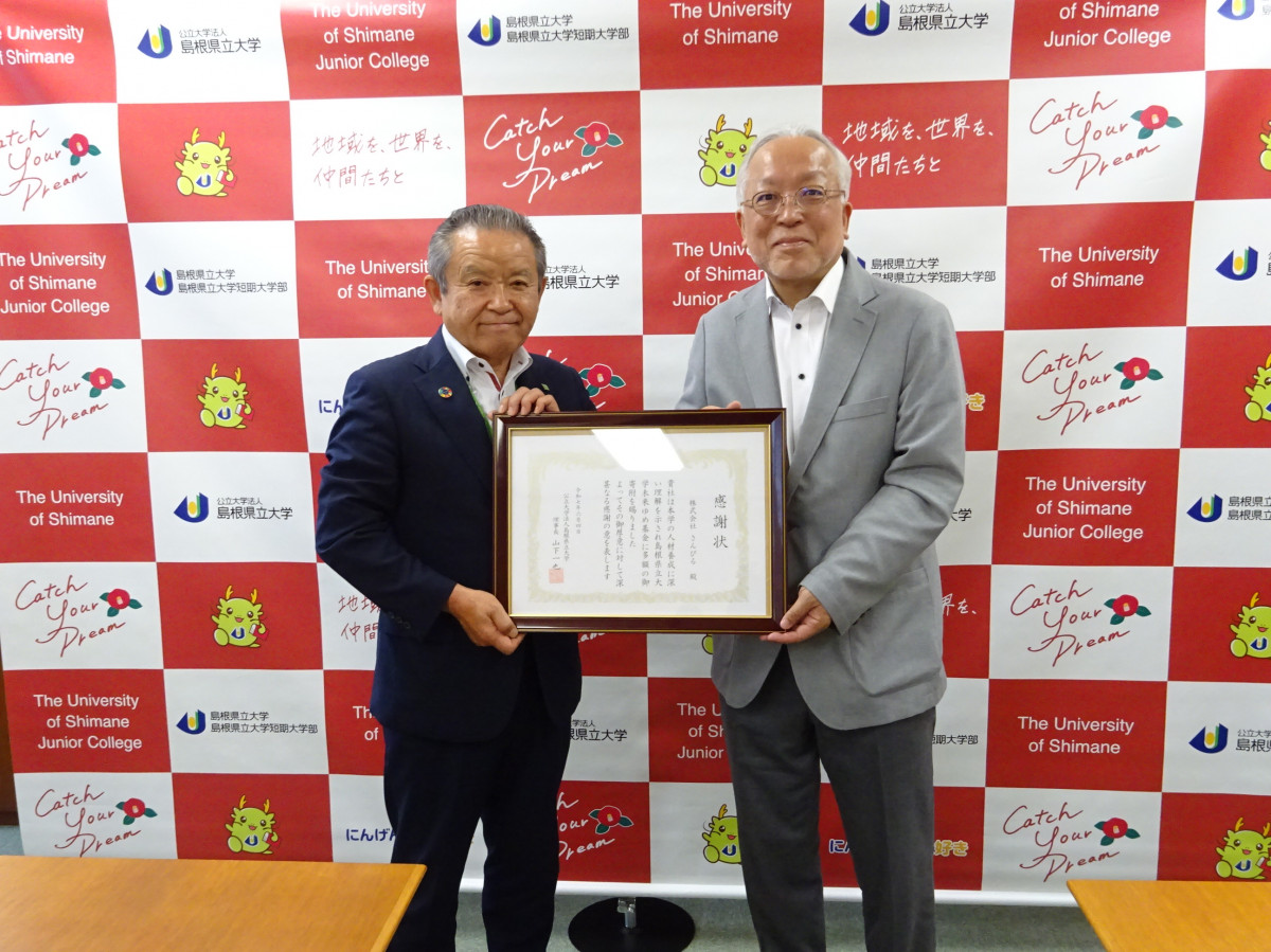 島根県立大学未来ゆめ基金へ御寄附いただき、ありがとうございました。